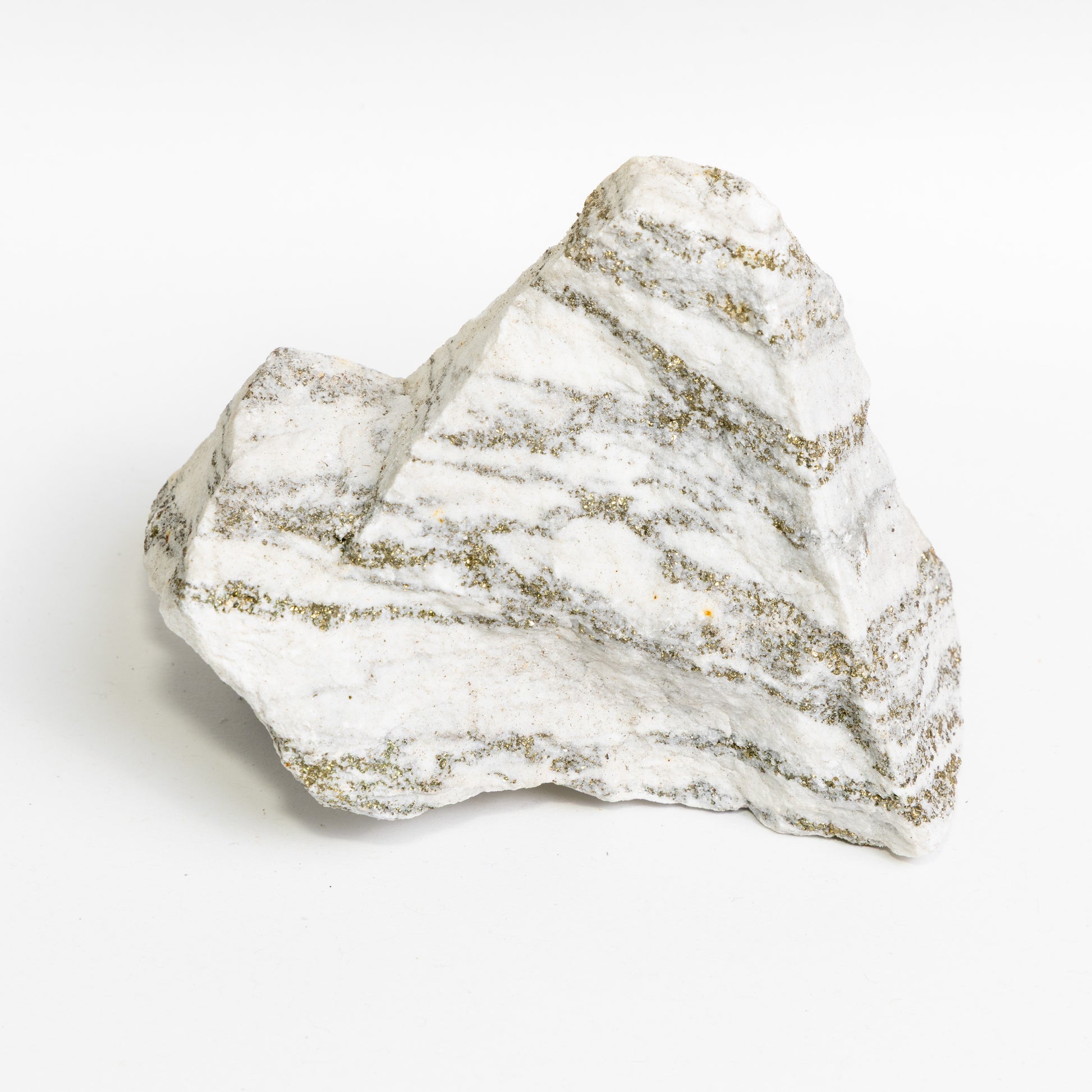 Zuckerdolomit ist weißer Dolomit mit Pyriteinschlüssen.